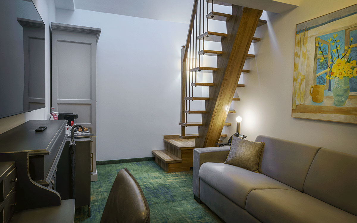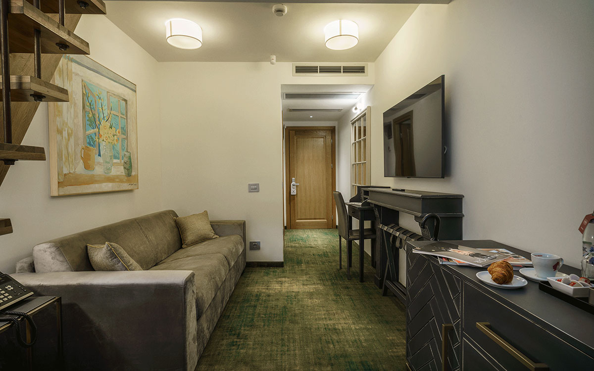One of the hotel’s most sought-after accommodation spaces, the Duplex, can welcome 4 guests in a setting characterized by refinement, elegance, and guaranteed comfort. The special design of the room will be impressive from the first glance, through the carefully selected pieces to provide an unforgettable experience. Representative of our style, the room also offers a view of our restaurant’s terrace, another bohemian corner that takes us back in time.